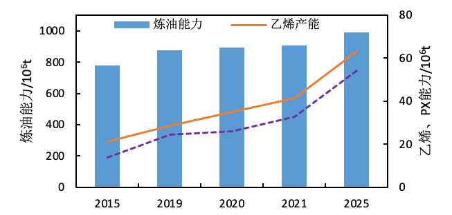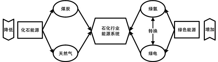 我国已经步入新发展阶段,需要积极应对国内国际形势变化,尽快达成双碳目标中符合国家生态文明建设的要求,这也为我国石化行业转型升级、产业结构重整与新旧动能转换提供了发展窗口期。实现双碳目标会给石化行业带来新机遇:① 推动我国石化工业绿色转型发展,助力产业能源与资源结构优化,建立节能减碳战略理念,帮助企业从扩产能追求粗放的增量效益时代迈入重视绿色低碳的高质量发展时代;② 推动企业加大绿色低碳技术科研投入,积极实施应用碳减排技术,提前布局绿氢、绿电、核能、地热能等新能源与石化行业能源系统的耦合发展路线,利用区域优势与绿色能源生产企业协同发展,构建多能集成的绿色能源系统;③ 加速产业结构调整,开发新工艺、新技术、新产品,推进炼化一体化全局资源优化决策管理,锚定“油转化”“油转特”转型发展战略,实施降油增化经营路线,进军高附加值高端产品市场,实现企业节能降碳与提质增效双赢。