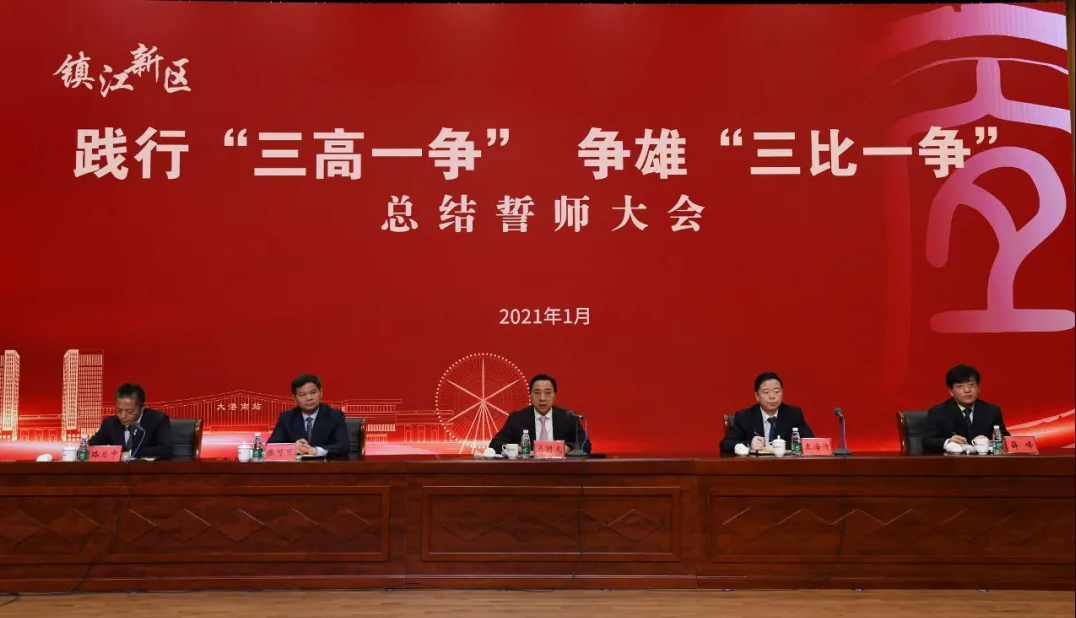 1月14日下午,镇江新区举行践行“三高一争”、争雄“三比一争”总结誓师大会。市委书记马明龙出席并讲话,强调新区是一块干事创业的“宝地”,要在“三比一争”之中,比出更强精气神、比出更强战斗力,以舍我其谁的气概,在“三高一争”新征程上勇立潮头、加速奔跑,跑在最前列。和记集团官网股份董事长曹正国先生出席活动。